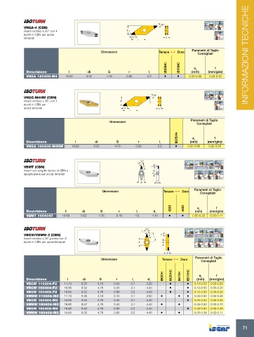 Inserti con singolo riporto in CBN e lt d1 MAX 52° MAX MAX