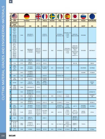 334 ISCAR CUTTING MATERIAL GRADES AND ENGINEERING MATERIALS Material Group No.USA Germany U.K. France Sweden Italy Spain Japan Russia EURONORMAISI/SAE/UNS/ASTM/AA Werkstoff DIN BS AFNOR SS UNI UNE JIS GOST EN78640;8640 H;8740;8740 H;8742;G86400;G87400;G87420;H86400;H87400;K116401.6546 40NiCrMo2-2;40 NiCrMo 2 240 NCD 2;40 NCD TS40 NiCrMo 2;40 NiCrMo 2 KB40 NiCrMo 2 DF;F.1205;F.1204;TO.ESNCM 240;SNCM 240 RCH 38ChGNM78617;8617 H;8620;8620 H;8620 RH;8617;G86170;G86200;H86170;H86200;K121471.652320NiCrMo2-2;21NiCrMo2;21 NiCrMo 2805 H 20;805 M 20;806 M 20;En 36220 NCD 2 2506 20 NiCrMo 220 NiCrMo 2;20 NiCrMo 3-1;F.1522;F.1534SNCM 220;SNCM 220 H;SNCM 220 HRCH;SNCM 220 M;SNCM 220 RCH;SNCM 21 H20ChGNM 20NiCrMo2-27 1.5755 31NiCr14;31 NiCr 14 653 M 31 18 NC 137 3135 1.5710 36NiCr6;36 NiCr 6 640 A 35 35 NC 6 SNC 236 36NiCr674340;G43400;4337;G433701.6582 34CrNiMo6;34 CrNiMo 6816 M 6;817 M 4034 CrNiMo 8;35 NCD 6 2541 35 NiCrMo 6 KB F.1272 38Ch2N2MA 34CrNiMo67 1.8519 31CrMoV9;31 CrMoV 9 30Ch3MF 31CrMoV97 8630 1.6545 30NiCrMo2-2;30 NiCrMo 2 2 30 NCD 2 30 NiCrMo 2 KB7 4340;G43400 1.6580 30CrNiMo8 823 M 30 30 CND 8;30 NCD 8 30 CrNi Mo 8 SNCM 4317 K01907 1.5217 20MnV6;20 MnV 6 N55 C;GR 55;Grade 5520MV6;TS E 455 4;TU E 455 420MnV6;S4607300M;4340M;K442201.6928 41SiNiCrMoV7-6 S 1558 1.852340CrMoV13-9;39CrMoV13-9;39 CrMoV 13 9897 M 39 36 CrMoV 12 40CrMoV13-98 1.8515 31CrMo12;31 CrMo 12 722 M 24 30 CD 12 2240 32 CrMo 12 F.1712;F.124.A31CrMo12;40B8 1.8161 58CrV4;58 CrV 48 1.7361 32CrMo12;32 CrMo 12 722 M 24 30 CD 12 2240 30 CrMo 12 F.124.A 32CrMo128 9840;G98400 1.6511 36CrNiMo4;36 CrNiMo 4817 M 37;816 M 4040 NCD 3;35 NCD 539 NiCrMo 4;39 NiCrMo 4 KBF.128;F.1280;35 NiCrMo 4SUP 10 40ChGNM;40ChN2MA 36CrNiMo486145;6150;6150 H;G61500;H615001.815951CrV4;50CrV4;50 CrV 4735 A 50;735 A 51;735 H 51;735 M 50;En 4750CrV4RR;50 CV 4;51 CV 42230 50 CrV 4F.143;F.143.A;51 CrV 4;F.1430SUP 10;SUP 10-CSP;SUP 10 M50ChFA;50ChGFA 51CrV48 3435 1.5736 36NiCr10;36 NiCr 10 30 NC 11SNC 631;SNC 631 H;SNC 631 M8A128 Grade A;J91109;J91129;J91139;J911491.3401;1.3403X120Mn12;X 120 Mn 12;G-X120 Mn 12BW 10 Z 120 M 12 2183 GX 120 Mn 12F.240.A;F.240.A1;AM-X 120 Mn 12;F.8251SCMnH 1;SCMnH 11 110G13L8 4142;G41420 1.2332 47CrMo4 708 M 40 42 CD 4 2244 42 CrMo 4 42 CrMo 4 SCM;SCM 440 47CrMo4
