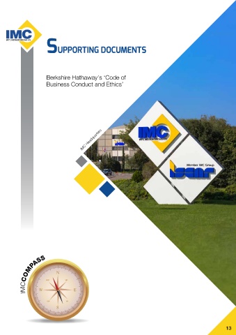 IMC SUPPORTING DOCUMENTS INT’L METALWORKING CO. Berkshire Hathaway’s ‘Code of Business Conduct and Ethics’ IMC Headquarters IMCCOMP ASS 0 20 40 320 340 NW N 80 300 60 W NE E 100 SW SE 120 140 160 S 260 200 280 220 240 180 13