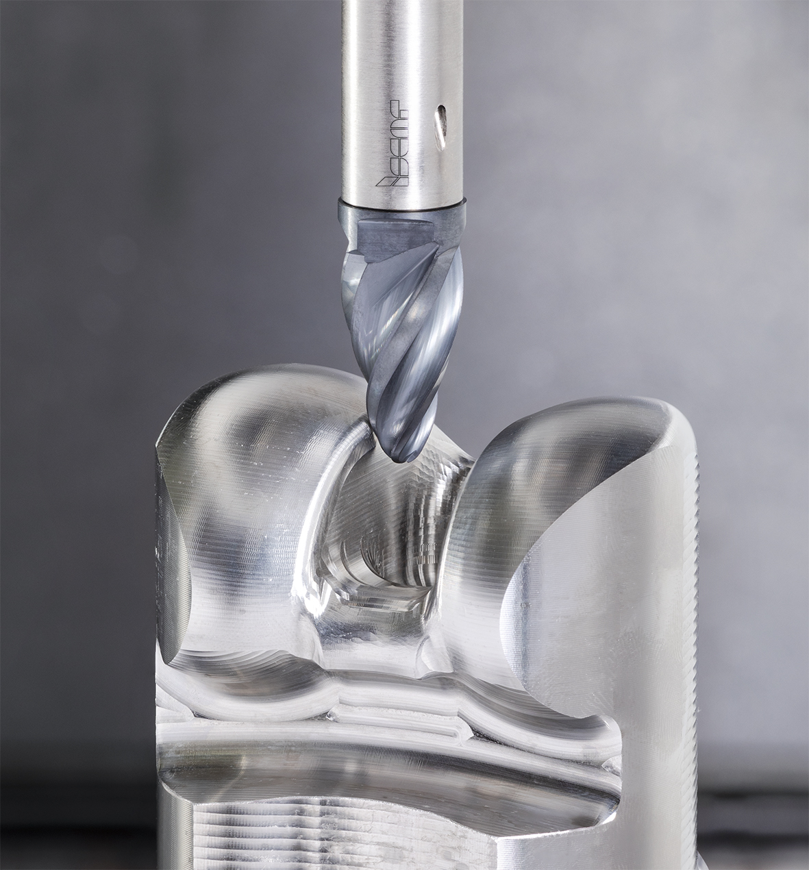Fig. 4 – Applying small-in-diameter barrel-shaped endmills significantly reduces cycle time when machining the components of a knee prosthesis.
